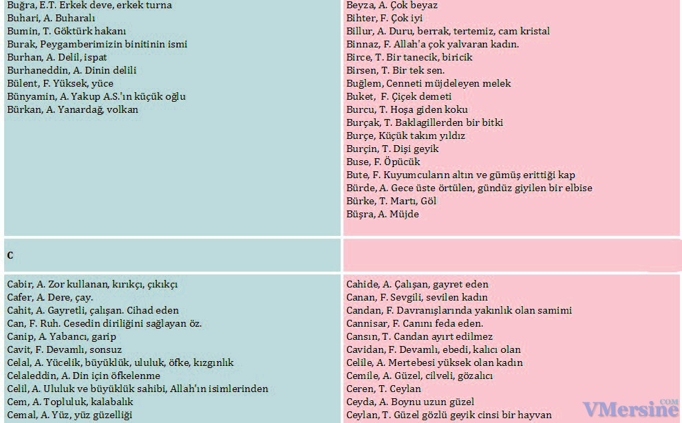 Турецкие имена все со смыслом и со значением, например: Аслан — лев, Гюллер — смеющаяся, Айсу — лунная вода, Йылдырым — молния, Дениз — море, Демет — букет, Дамла — капля, Чалайан — водопад, Эдже — принцесса, Зафир — победитель и тд…)