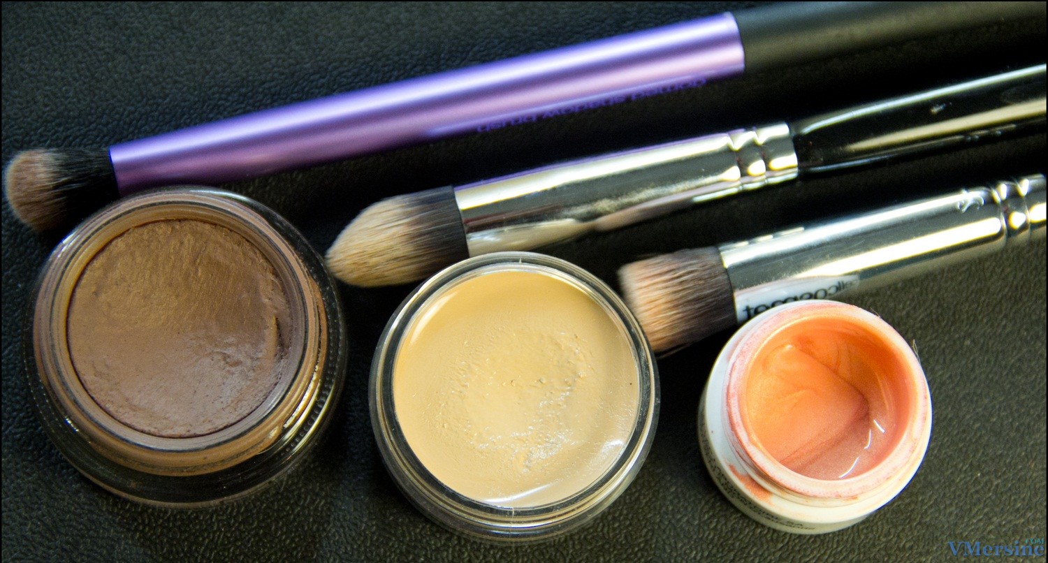Кремовые тени бывают глянцевые, матовые, на любой вкус. Этой мой любимый вид теней. Несмотря на кажущуюся сложность в применении, кремовые тени очень легко наносить и тушевать. И для этого не обязательно иметь кисти: весь макияж глаз можно сделать пальчиками! Достаточно знать, что кремовые тени засыхают на веке довольно быстро, потому советую приноровиться, и, нанеся тень на все подвижное веко, быстро её растушевать по направлению к внешнему уголку глаза.