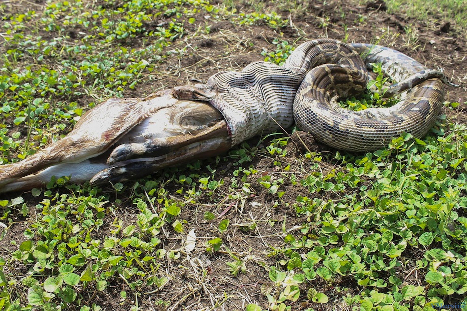 Питоны едят свою добычу прямо с костями.