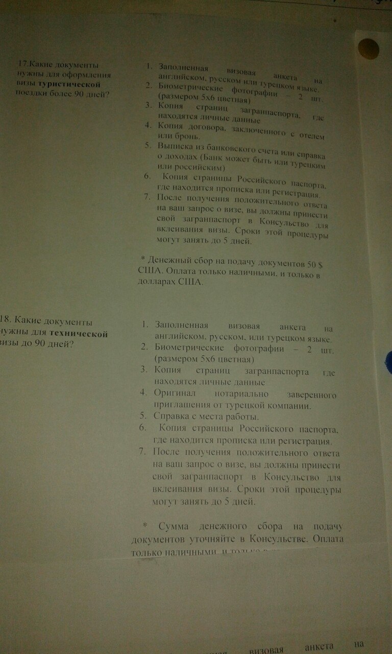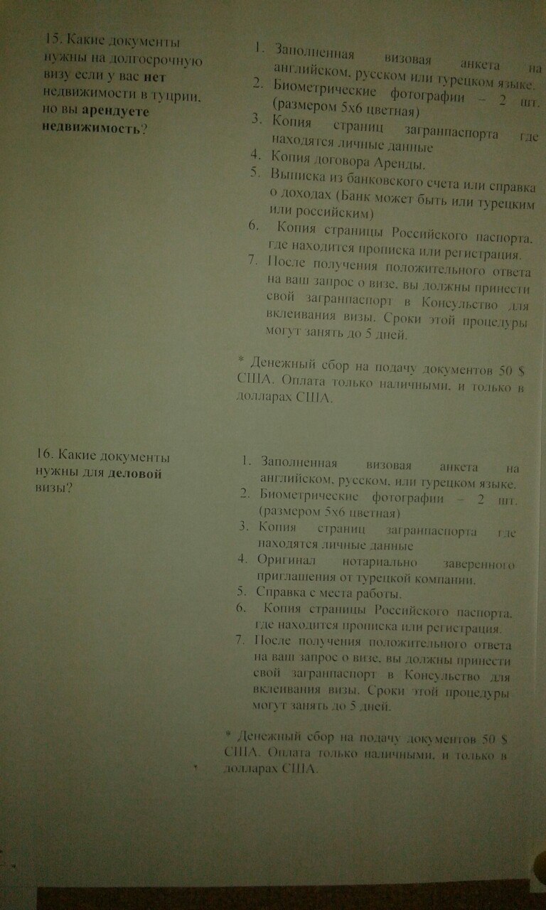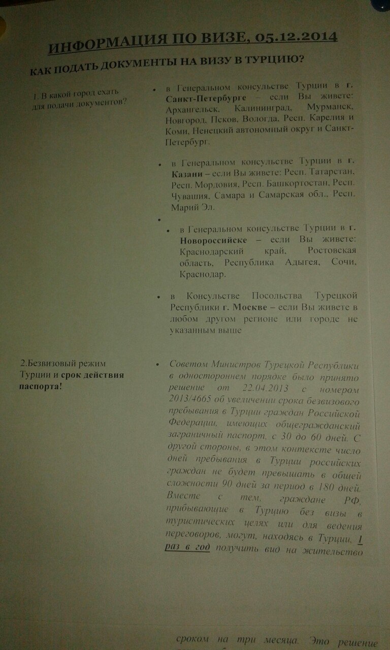 Полный перечень информации со стенда Турецкого посольства в Москве.