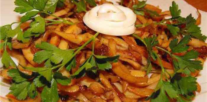 Перекладываем в салатницу, украшаем и кушаем, если останутся — а скорее всего — нет, то остывшие кальмарчики съедаются еще быстрей)))
